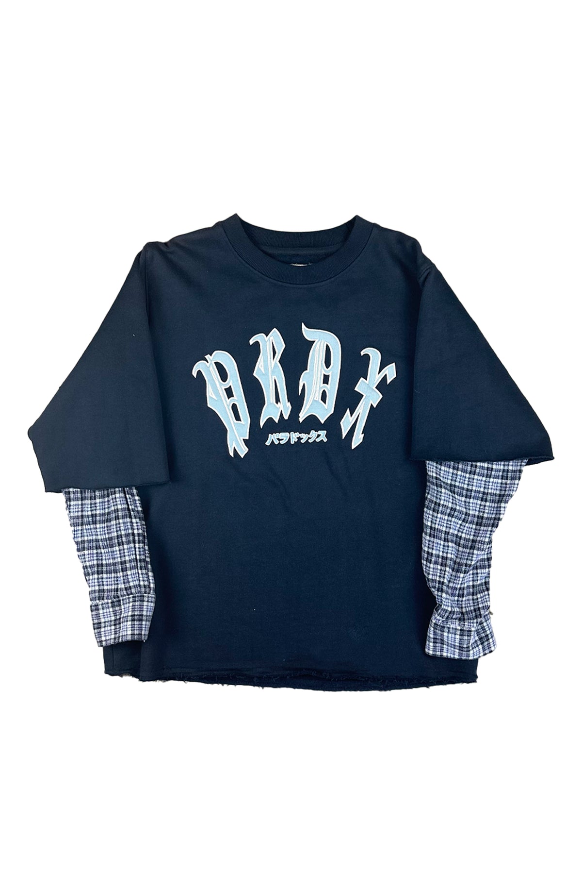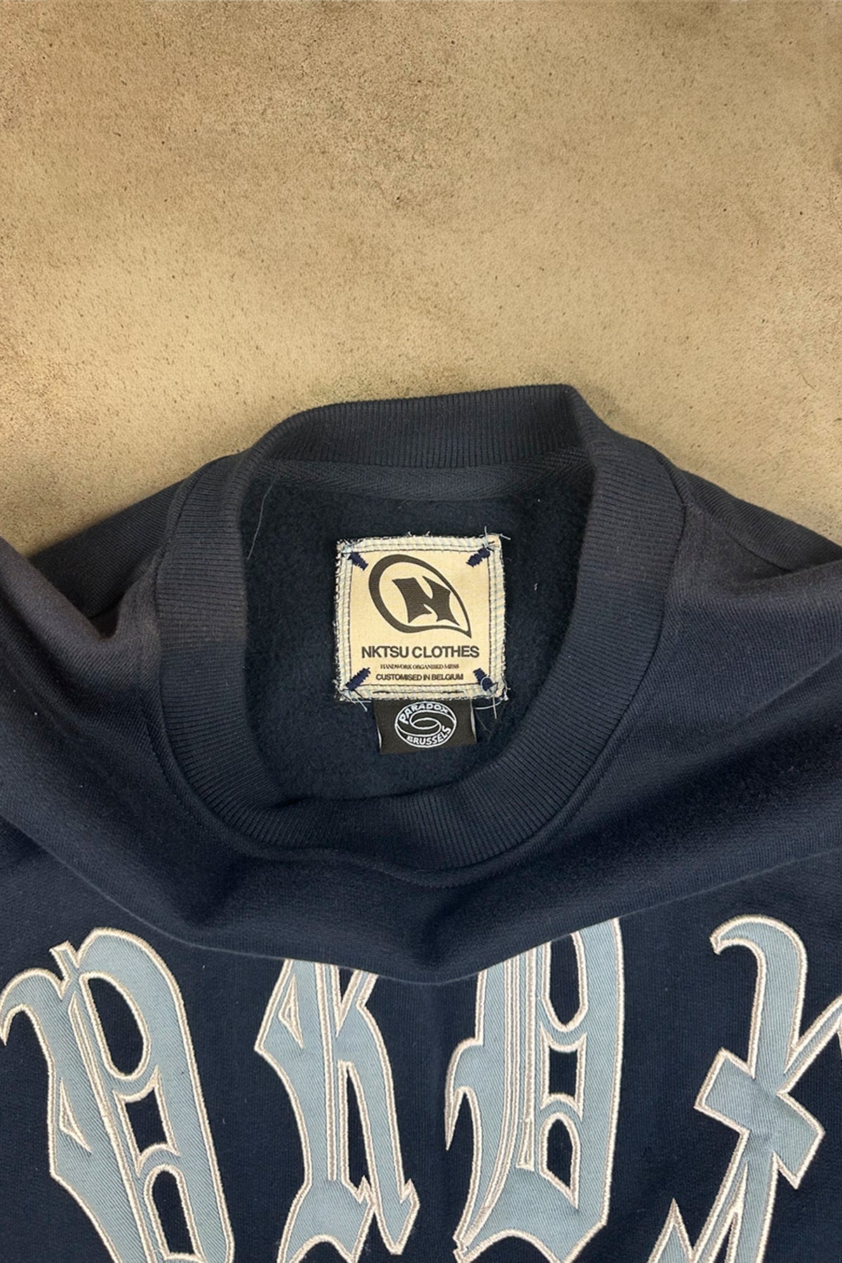 Paradox Crewneck with shirt sleeves reworked into a unique piece. Handcrafted in Brussels, with love.