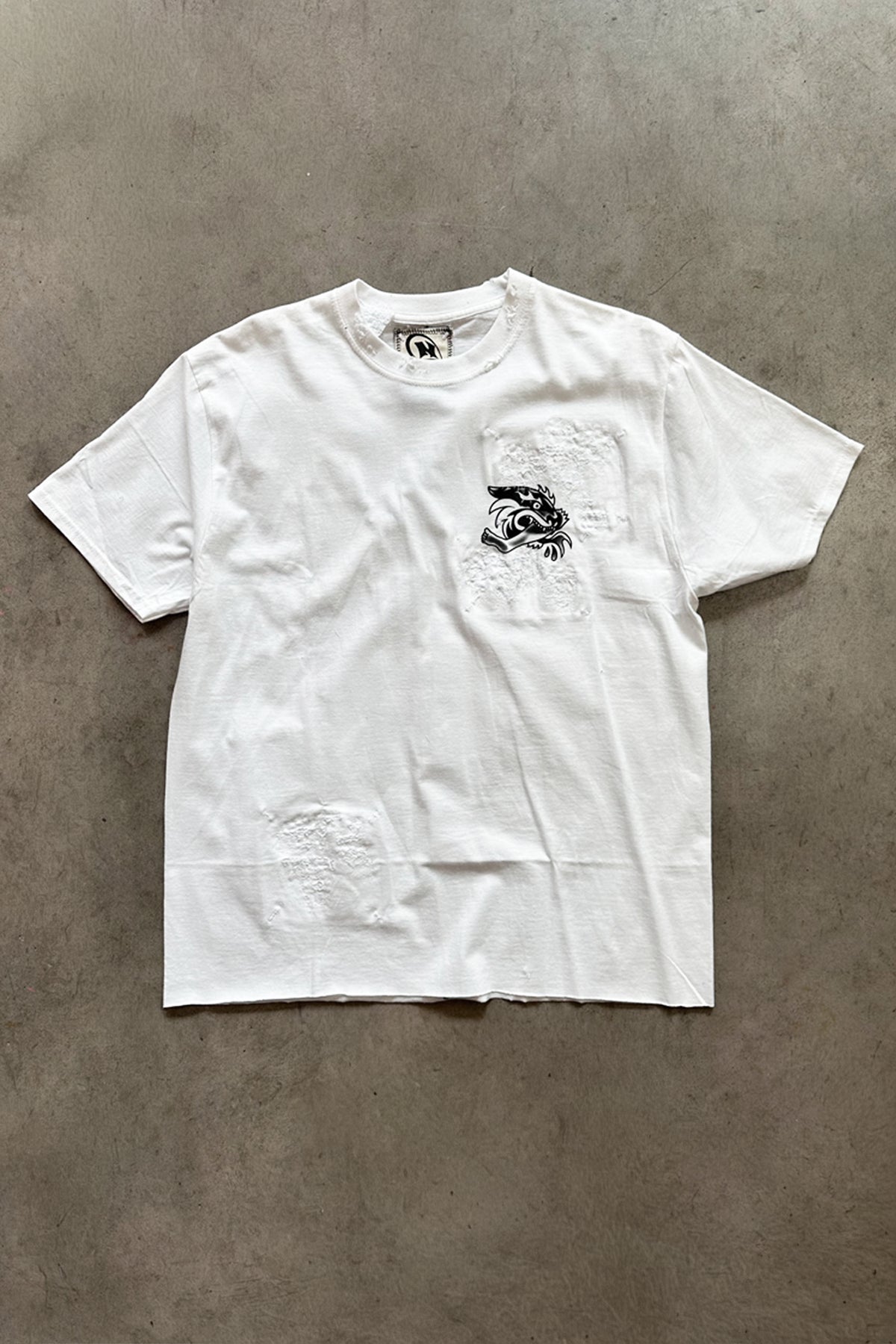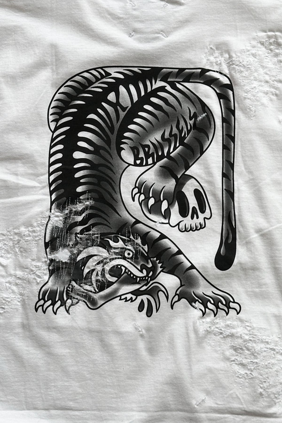 Paradox Tee-shirt reworked into a unique piece, featuring textured and raised details created through tearing and stitching. Handcrafted in Brussels, with love.