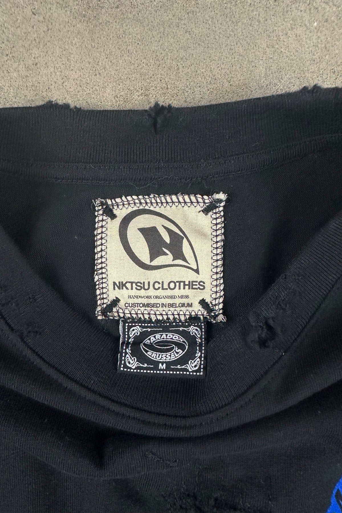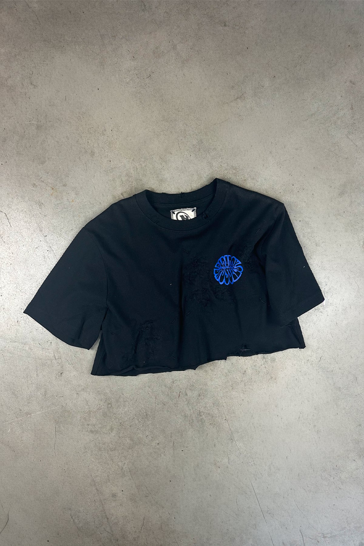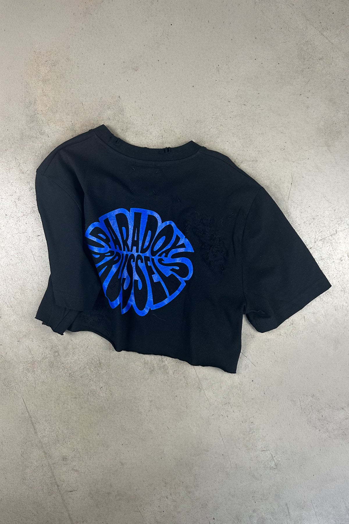 Paradox Crop Tee-shirt reworked into a unique piece, featuring textured and raised details created through tearing and stitching. Handcrafted in Brussels, with love.